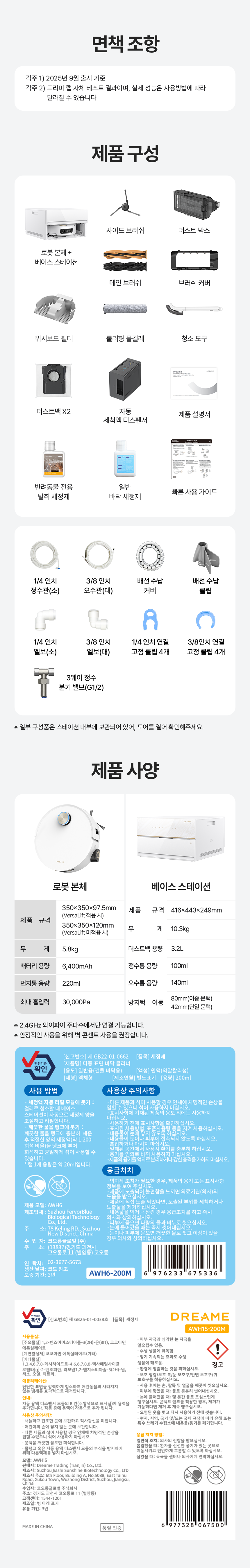 ▶로봇 청소기(본체) -정격 전력:75W / 최대 출력 전력:~20dBm ▶스테이션 -충전 정격 전류:0.5A / 정격 전류(건조+충전):0.68A / 정력 전력(먼지 비우는 동안):650W / 정격 전력(온수 세척 중): 360~420W